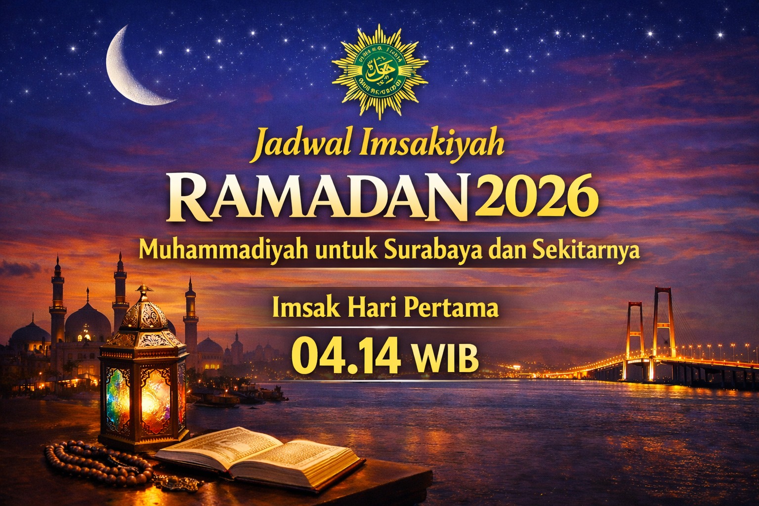 Pasuruano (WartaBromo.com) – El calendario de imsakiyah para el Ramadán 1447 Hégira para el área de Surabaya y sus alrededores fue publicado oficialmente por Muhammadiyah PP Tarjih y Consejo Tajdid. Este cronograma es una guía para los miembros de Muhammadiyah en ayuno.