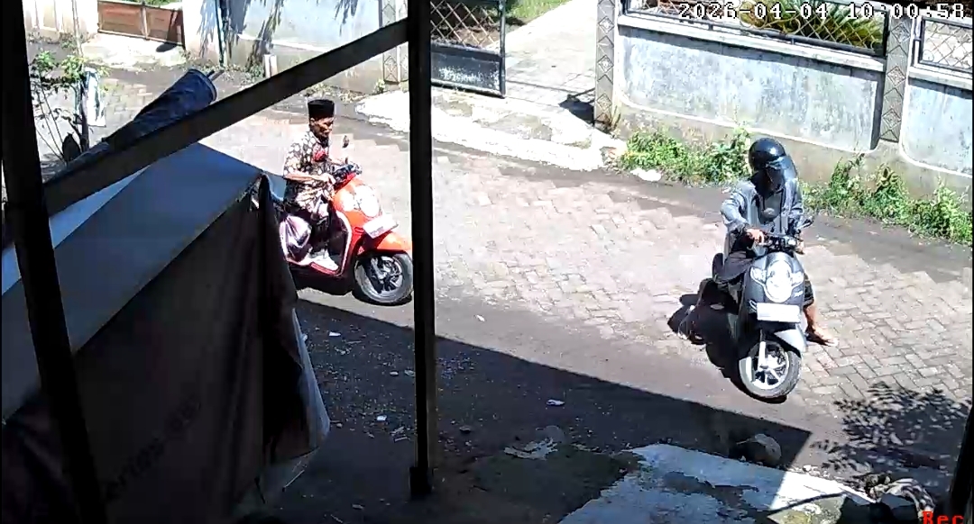 Este incidente fue registrado por una cámara CCTV en la casa de la víctima, Misbahul Munir (30), quien también es conocido como el jefe de RT 3/RW 3. En la grabación alrededor de las 10.00 WIT del sábado (4/4/2026) se vio a dos perpetradores llegar en una motocicleta.
