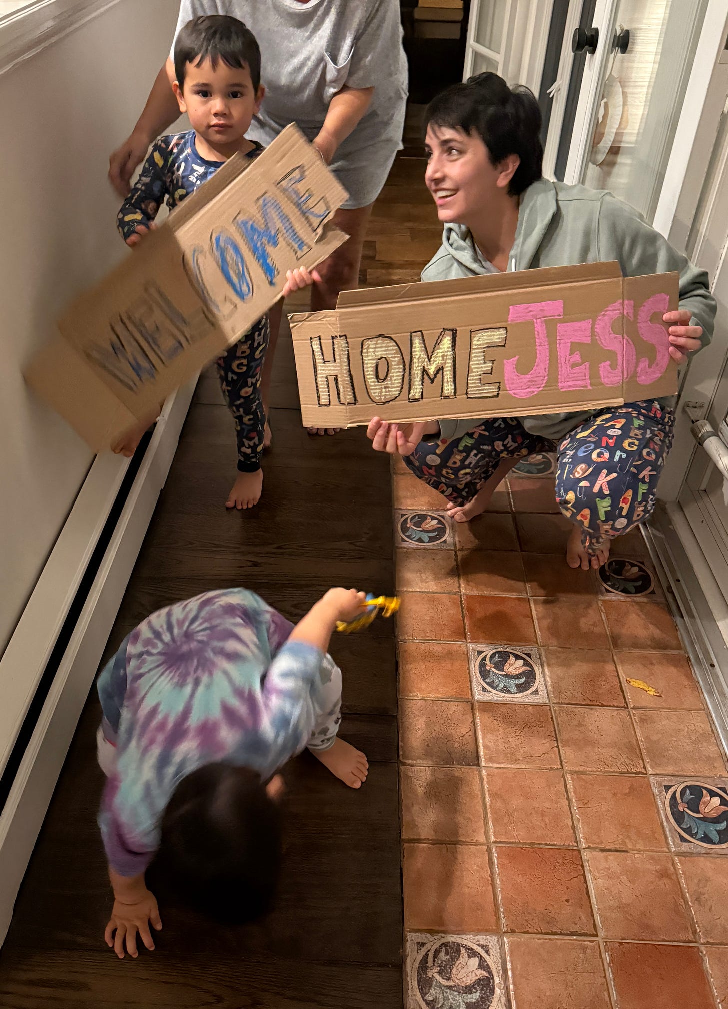 My friend and two of her children greet me upon my arrival at their house.