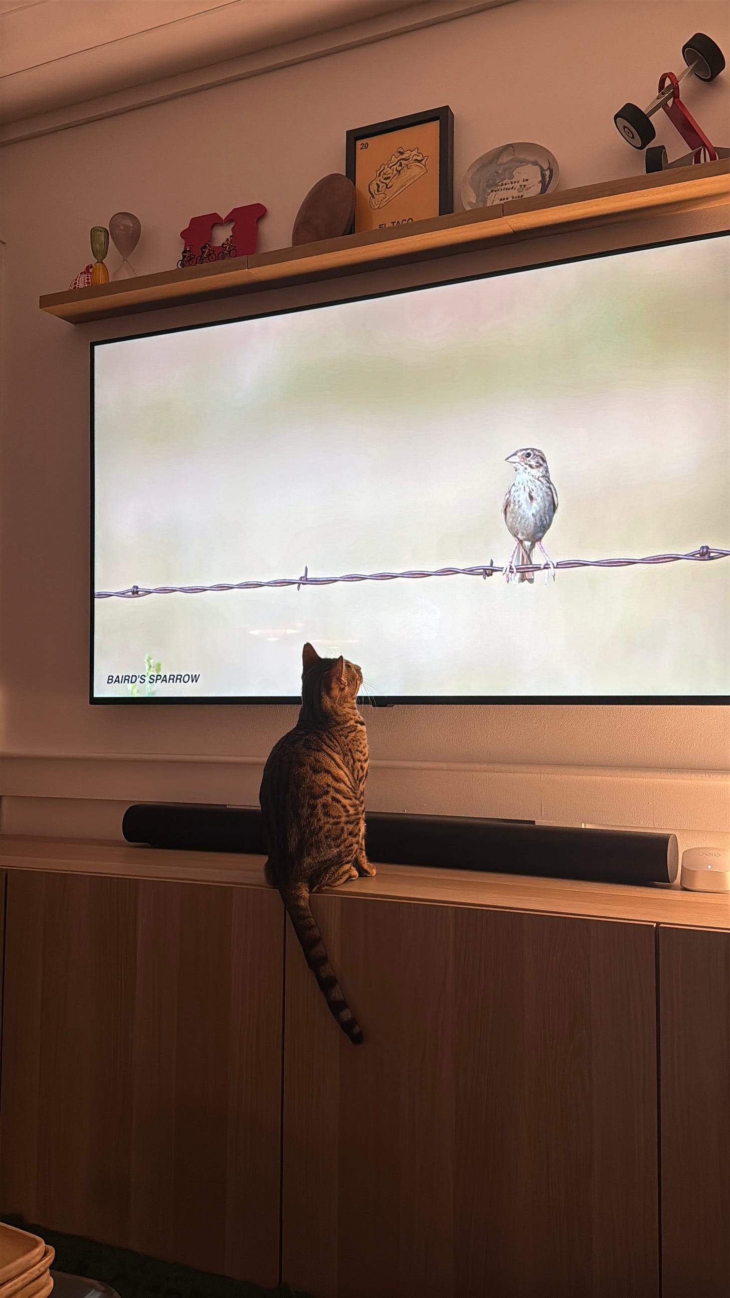 My friends’ cat, Marnie, watching the documentary on extreme bird watching READY